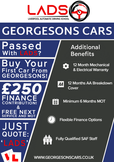 Partnered with Georgesons Cars, we bring you hassle-free car buying in Liverpool with great discounts and friendly service. Just qoute LADS